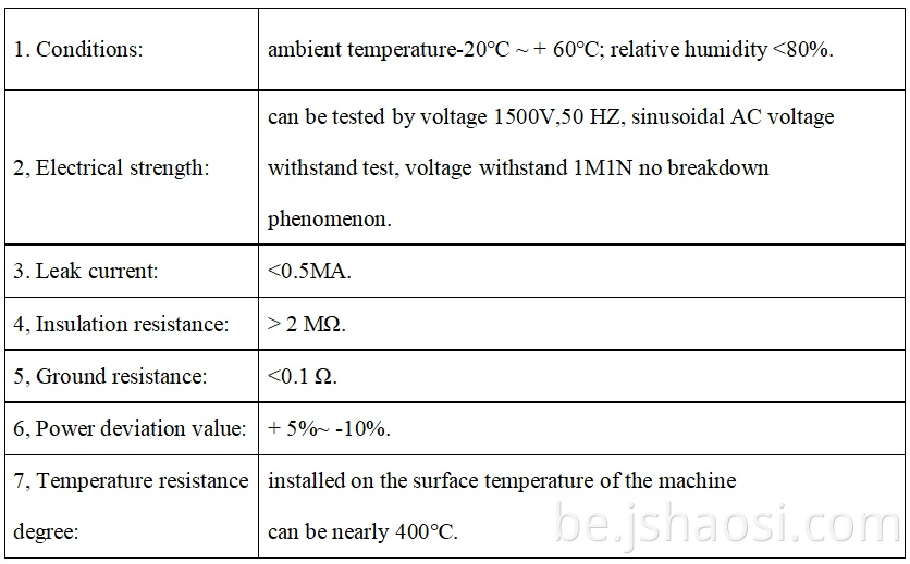 Ён можа быць цесна абсталяваны ацяпляльным корпусам, раўнамерным нагрэвам, добрай цеплаправоднасці, доўгай тэрмінам службы і іншымі характарыстыкамі.